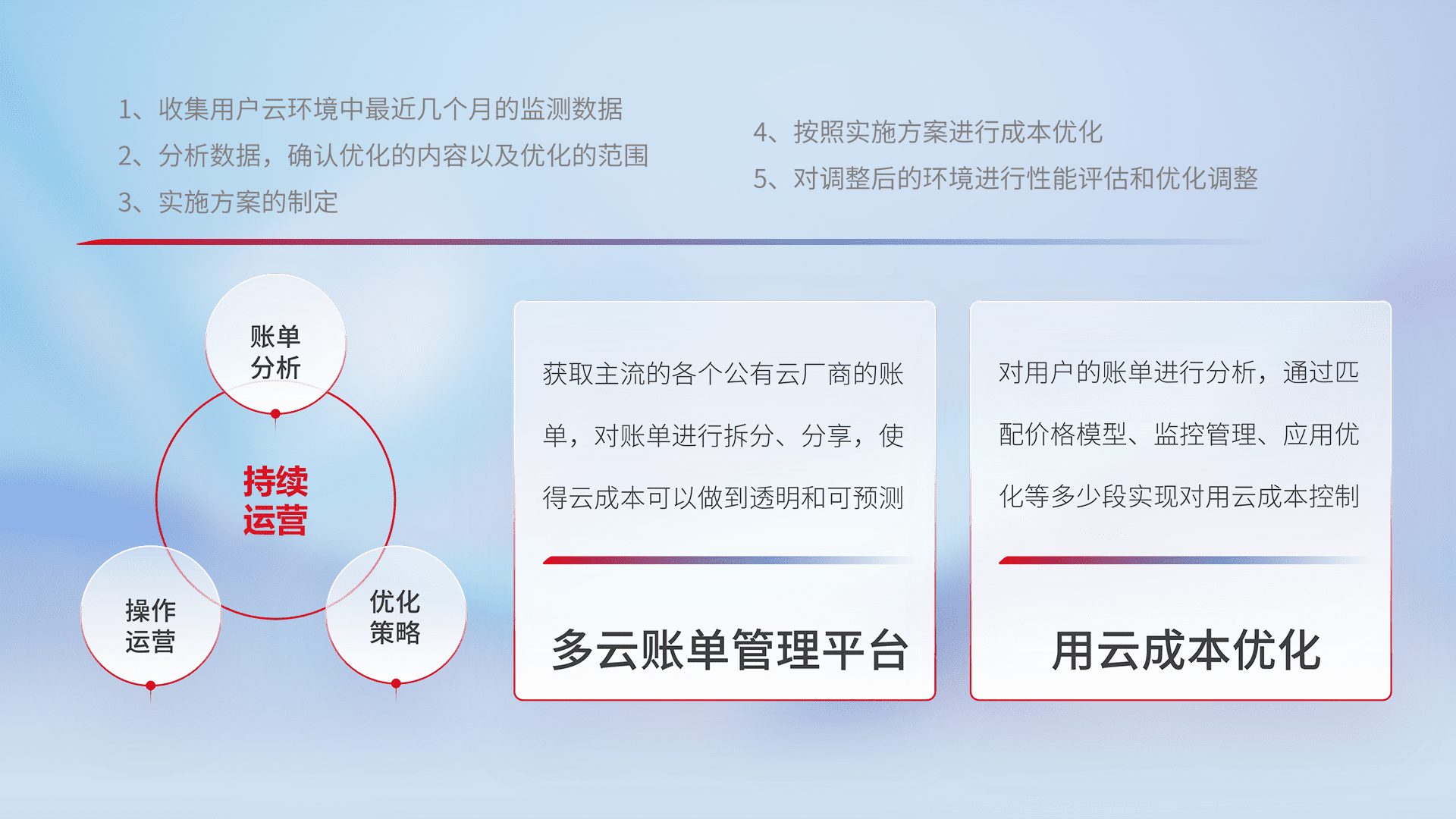 监控业务系统资源开销,,,对资源的消耗精确计量,,,实现费用的透明化管理,,,不断提升资源使用率,,,调整资源购买方式,,,,降低资源费用成本,,,用云成本可预测、、、、用云费用可优化,,云资源配额有据可依。。